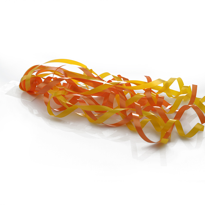 Detta härliga virrvarr av lätt krullade band består av hela 8 meter kraftiga polyband som är 1 cm breda.