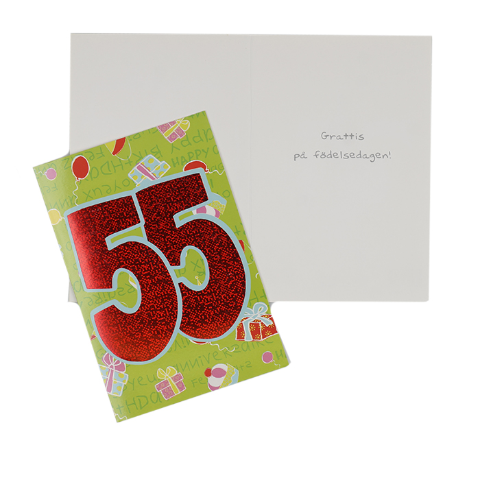 ”55 Grattis på födelsedagen med rödskimrande 55
