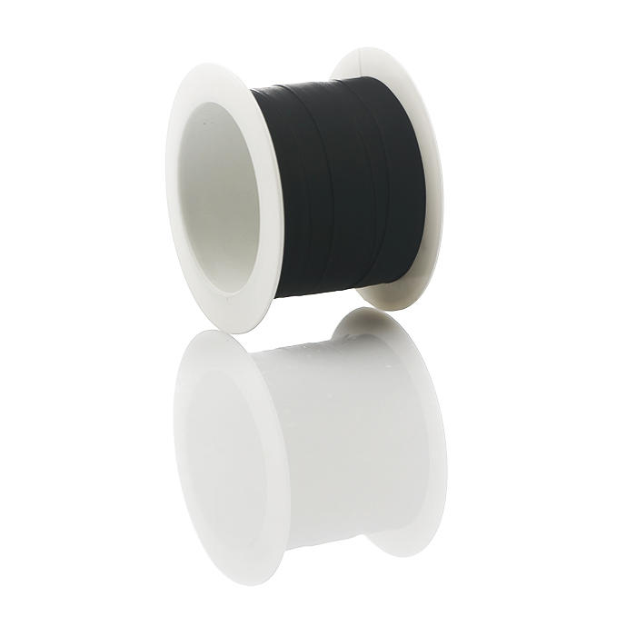 Ett matt band i klara färger på plastrulle. Rullen består av 10 m band