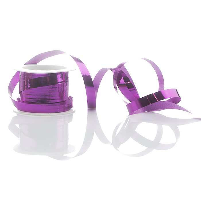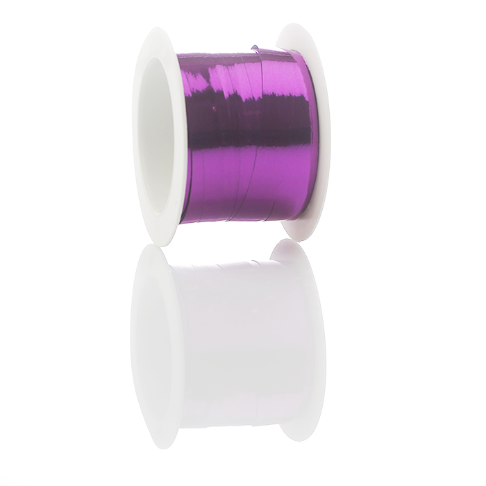Ett metallicband i klara färger på plastrulle. Rullen består av 10 m band