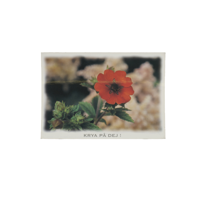 På kortets baksida finns plats för att skriva adress och en personlig hälsning. Det finns också plats för frimärke.
